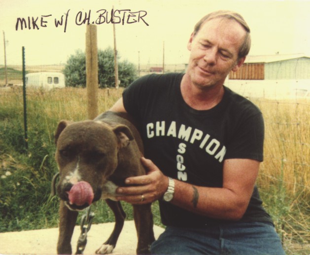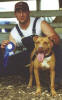 The late Mike Shebesta with his Champion Buster, a son of Red Neck and grandson of Boomerang. Not a good picture, but the dog was such a great one that I had to include it. |